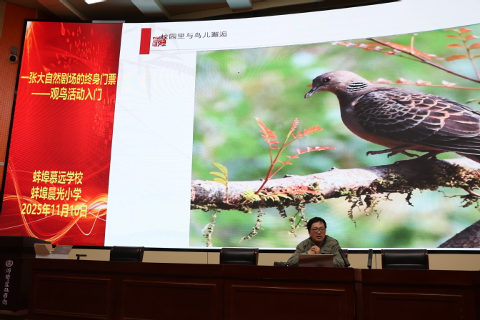 11月10日,蚌埠学院淮河文化研究中心联合蚌埠市野生动植物保护协会,走进蚌埠慕远学校,开展2025“科普安徽”科技志愿服务系列活动,为同学们带来一场别开生面的生态科普课堂。