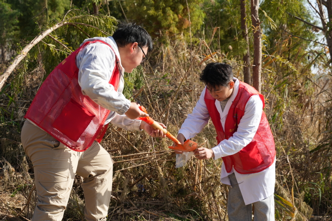 大学生志愿者们前往湿地公园的核心区域——观鸟台。秋日的三汊河芦苇丛生、水波潋滟,成群的斑嘴鸭栖息于水中。成员们在老师的指导下开展士质与水质检测,采集湿地土壤样本,将生态科学知识与具体实践结合,为后续开展“淮河流域生态保护”宣讲积累了鲜活案例。(撰稿:秦雨晗 编辑:洪何苗 审核:吴长法)