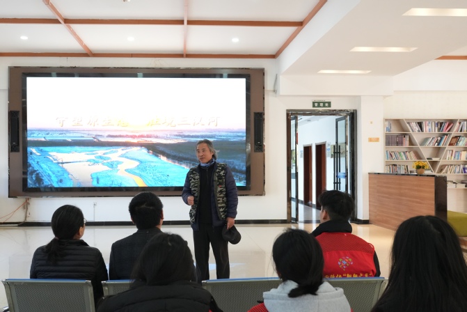 活动伊始,大学生志愿者们集中观看了湿地公园主题宣传片《守望原生态,胜境三汊河》,该片通过细腻镜头,生动呈现了三汊河湿地的原生态风貌、丰富生物多样性,让成员们直观体悟“绿水青山就是金山银山”的深刻内涵。