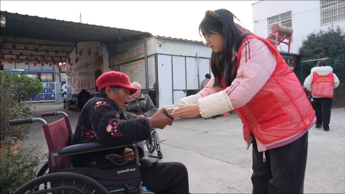 活动伊始,淮河文化大学生讲解团成员用通俗易懂的语言向老人们讲述淮河文化的历史渊源、民俗风情与人文故事。老人们认真聆听,在沉浸式体验中感悟淮河文化的深厚底蕴和独特魅力。讲解结束后,张琳琳代表党支部向养老院捐赠《淮河文化100问》百余册,进一步丰富了老人们的精神文化生活。随后的互动环节里,志愿者们手把手教老人们转手帕,简单的动作引来阵阵欢笑。临近傍晚,师生志愿者一同包饺子,大家分工协作,填馅、捏合,很快一个个饱满的饺子便摆满托盘。热气腾腾的饺子出锅上桌,老人们细细品尝,脸上洋溢着幸福的笑容。