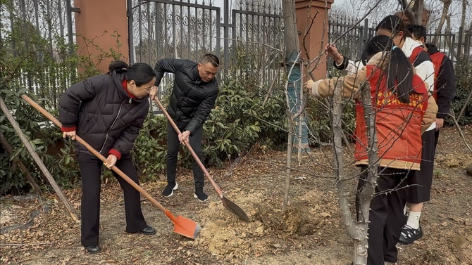宣讲结束后,大家开展植树活动,一棵棵树苗迎风挺立,为美丽的校园增添了勃勃生机。