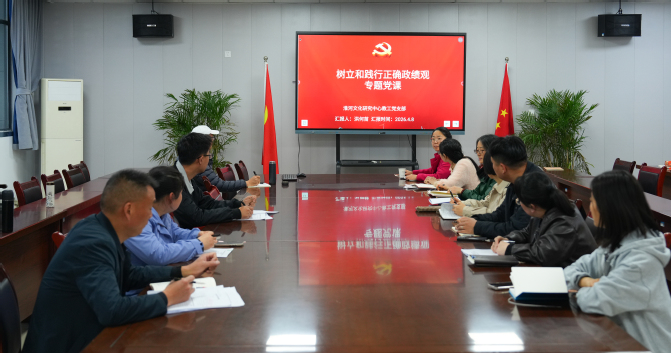 为深入学习贯彻习近平总书记关于树立和践行正确政绩观的重要论述,4月8日下午,淮河文化研究中心教工党支部开展“树立和践行正确政绩观”专题党课。淮河文化研究中心副主任、教工党支部书记洪何苗担任主讲人,全体教师党员参会学习。