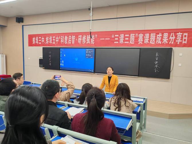 本次活动以“赛课题成果案例”为核心载体,设置课题案例展示、科技社团课、特色艺体课等多个板块,集中呈现两校在课堂教学、课题研究与课程育人方面的阶段性成果。活动分别在蚌埠三中新校区与蚌埠五中校区同步开展,吸引了多所学校的教育同仁前来观摩交流。